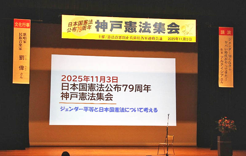 11月3日兵庫県憲法会議主催の「日本国憲法公布79周年神戸憲法集会」がうはらホールで開かれ300人が参加しました。